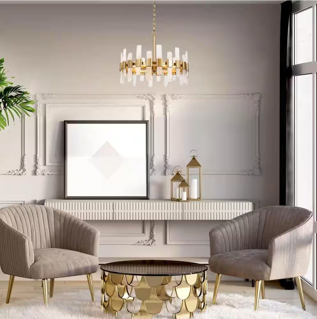 Mid-Century Modern Gold Kitchen Island Chandelier, 6-Light Glam Dining Room Ceiling Light with Icing Glass Strips